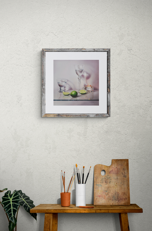 La presencia de la lima aporta frescura y contraste. Por un lado, su color vibrante introduce energía cromática. Por otro, su textura húmeda refuerza la sensación de realismo. Mientras tanto, la vela encendida añade calidez y un punto focal íntimo. En consecuencia, se genera un equilibrio armonioso entre lo natural y lo creado.